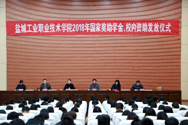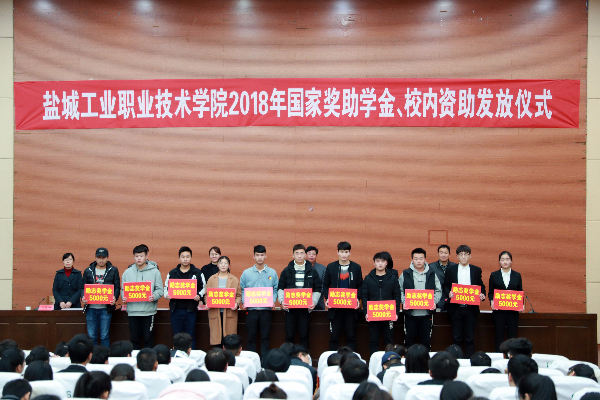 在欢快的进行曲中,与会领导为奖助学金获得者代表颁发了奖金。国家奖学金获得者金昱彤和国家励志奖学金获得者刘双美、国家助学金获得者仲莉、建档立卡学生陈龙依次发言,他们表示,感谢学校领导、老师的关怀与鼓励,感谢同学们的支持与帮助,今后将秉承“职业立身、技术报国”的校训,勤于学习,善于思考,勇于实践,以优异的成绩回报党和国家,回报学校和社会。