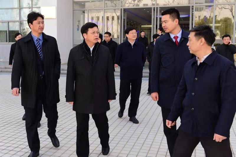 3月7日下午,市长曹路宝一行到我校实地调研、考察指导工作。副市长葛启发,市政府秘书长郭玉生,市政府副秘书长王胜,市教育局、工业和信息化局、人社局、财政局、自然资源和规划局主要负责同志陪同调研,我校党委书记邵从清、校长李仁和热情接待了曹路宝一行。