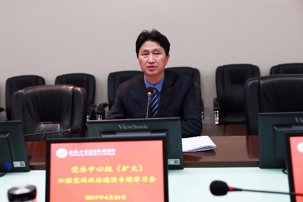 4月24日,学校党委中心组(扩大)在图文信息中心第一会议室召开加强党的政治建设专题学习会。全体在盐校领导和各二级学院、各部门主要负责人参加学习,党委书记邵从清主持会议。