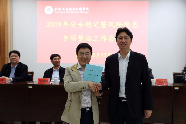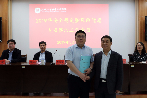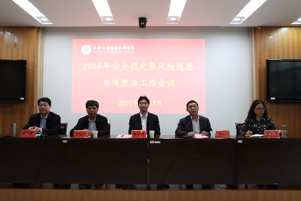 5月17日,学校在图文信息中心第三会议室召开2019年安全稳定暨风险隐患专项整治工作会议。校党委书记邵从清,党委副书记、校长李仁和,党委副书记张林龙,副校长蔺俊,纪委书记夏燕萍,以及全体中层干部、服务企业负责人参加会议。会议由李仁和主持。