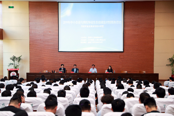 5月22日,我校在学术报告厅召开中小企业与毕业生创业就业对接服务会议。副校长刘必千,盐城市工业与信息化局副局长朱照伟,盐城市工信局中小企业发展改革处处长袁爱娣,盐城市中小企业服务中心主任祁永,部分中小企业负责人,我校学工处、各二级学院就业创业工作负责人、辅导员以及400多名学生参加会议。