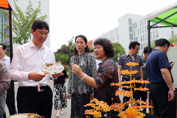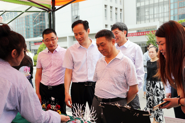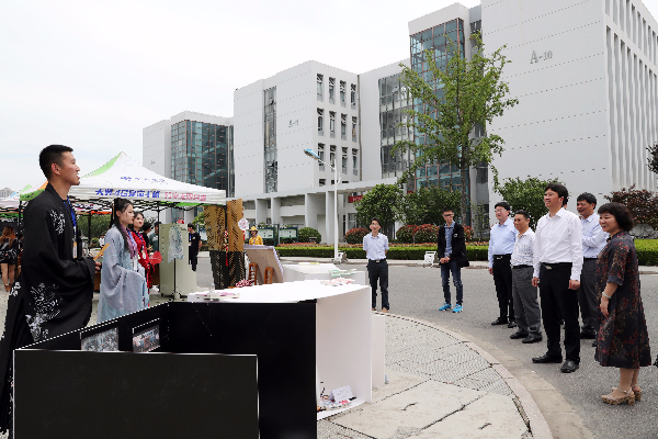 6月12日,纺织服装学院“匠心结硕果 建功新时代”服饰设计作品展在学校南食堂广场举行。本次活动由纺织服装学院、学工处、团委联合举办。邵从清、李仁和、张林龙、孙卫芳、刘必千、蔺俊、夏燕萍等校领导亲临现场观展。
