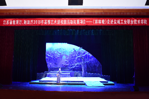 6月17日,由江苏省教育厅、省财政厅主办的“江苏省高雅艺术进校园拓展项目——《祥林嫂》”在我校大学生活动中心精彩上演。江苏省高雅艺术进校园项目办主任丁小兵、南京师范大学召唤教授,盐城市文化广电和旅游局副调研员颜金泉,盐城市演艺集团总经理曹利卫,我校副校长刘必千,党委委员、宣传部长陈宏武,后勤管理处处长孙开进,学校团委、二级学院团总支负责人与1400余名师生共同观看了演出。