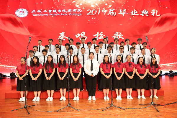 最后,全场高唱校歌《追逐梦想》,毕业典礼在激昂的歌声中圆满结束。