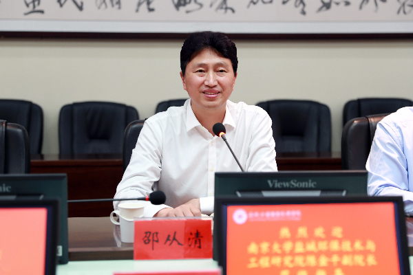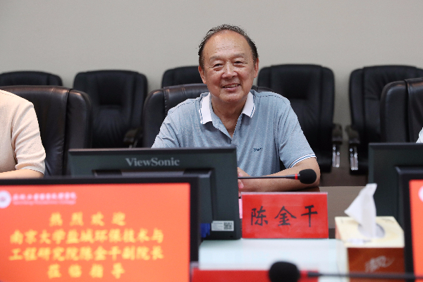 6月22日,南京大学盐城环保技术与工程研究院副院长陈金干、办公室主任陈向远来校交流座谈。校党委书记邵从清,办公室、教务处、科技处、九洲药学院负责人在第一会议室接待来宾。