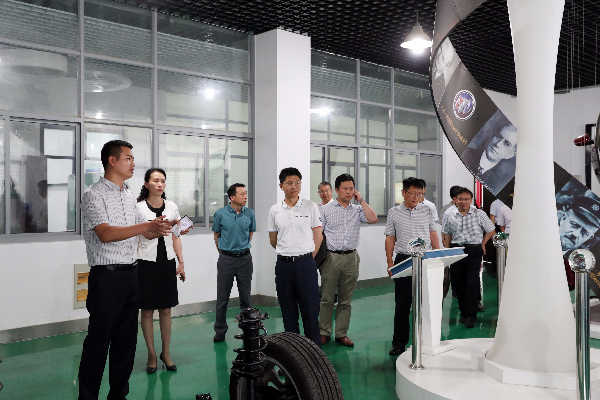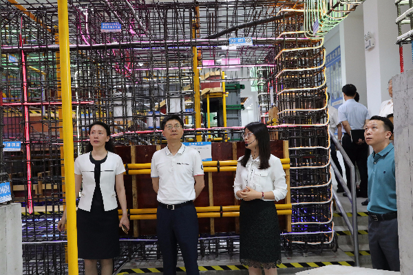 会谈前,符贵兴一行参观了学校工业中心、纺织服装展览馆和智慧建造开放实训平台。