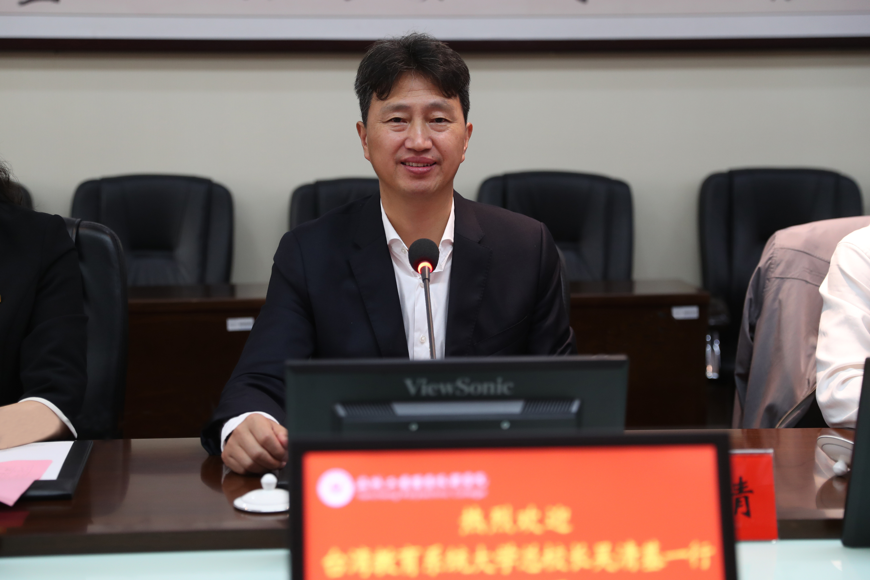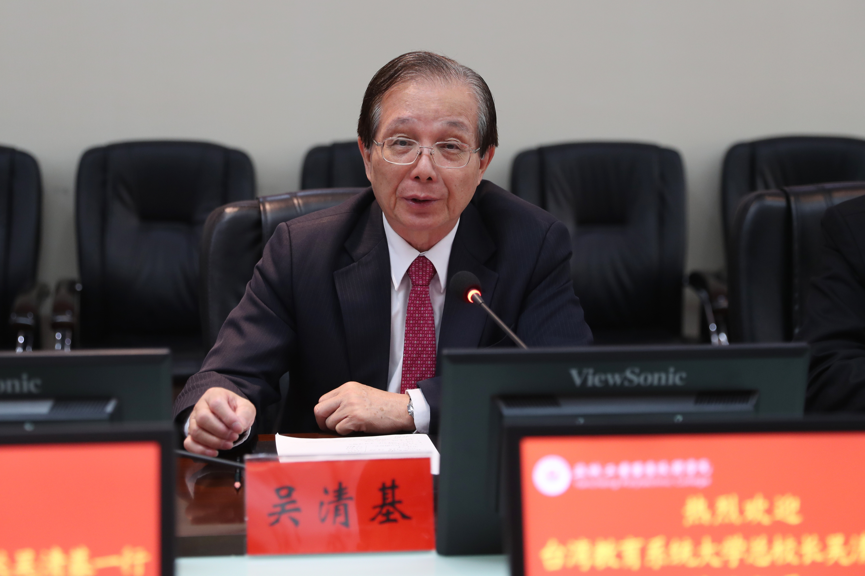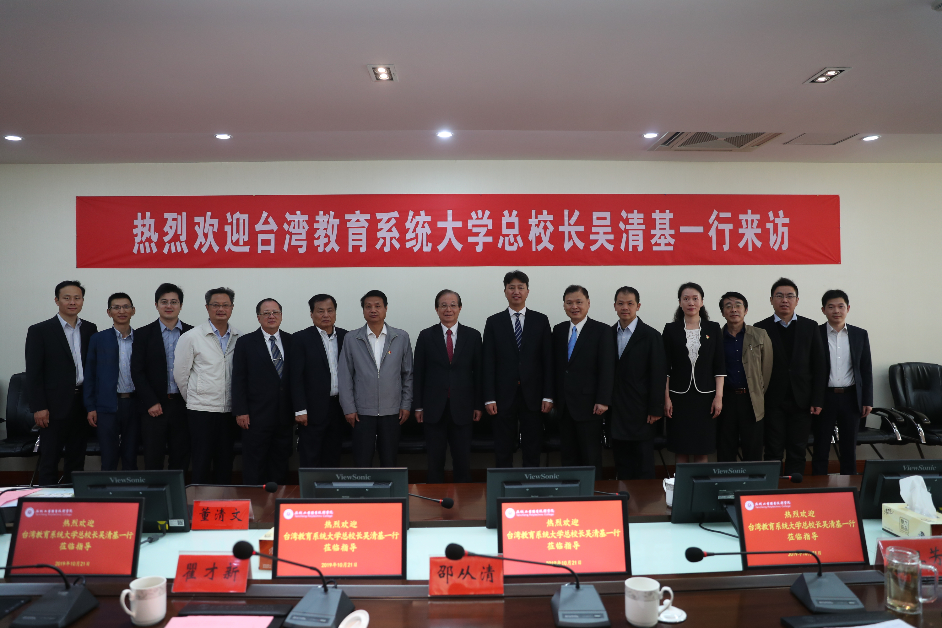 10月21日,台湾教育大学系统总校长吴清基、台湾知识库股份有限公司董事长丘昌其、上海星童投资股份有限公司董事董清文、中华未来学校教育学会秘书长黄淳亮、台湾教育文化交流策进会理事长黄仁莹一行5人访问我校。