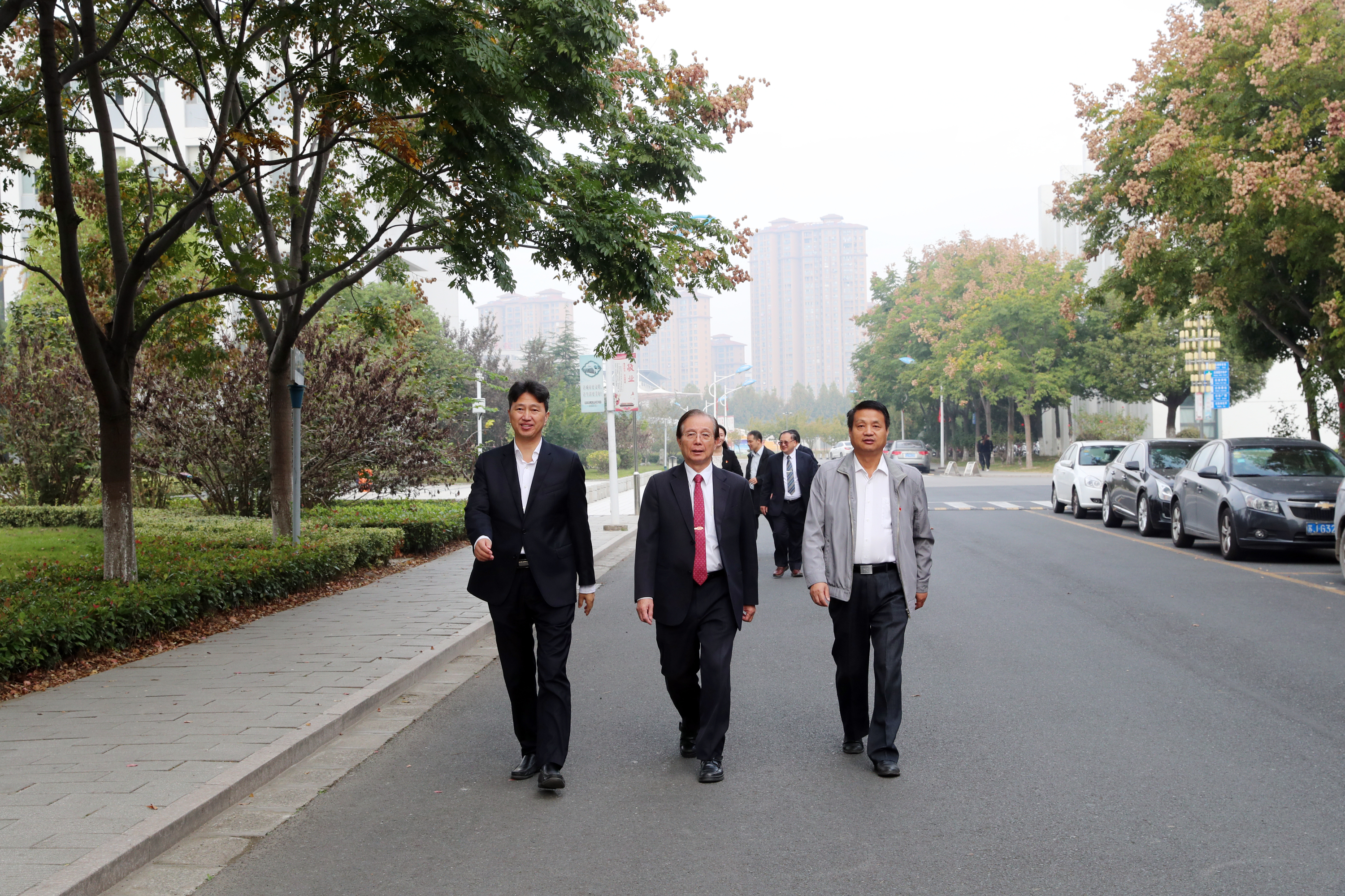 吴清基一行在校党委书记邵从清、校长瞿才新、副校长孙卫芳陪同下参观建筑实体构造实训基地和校园。