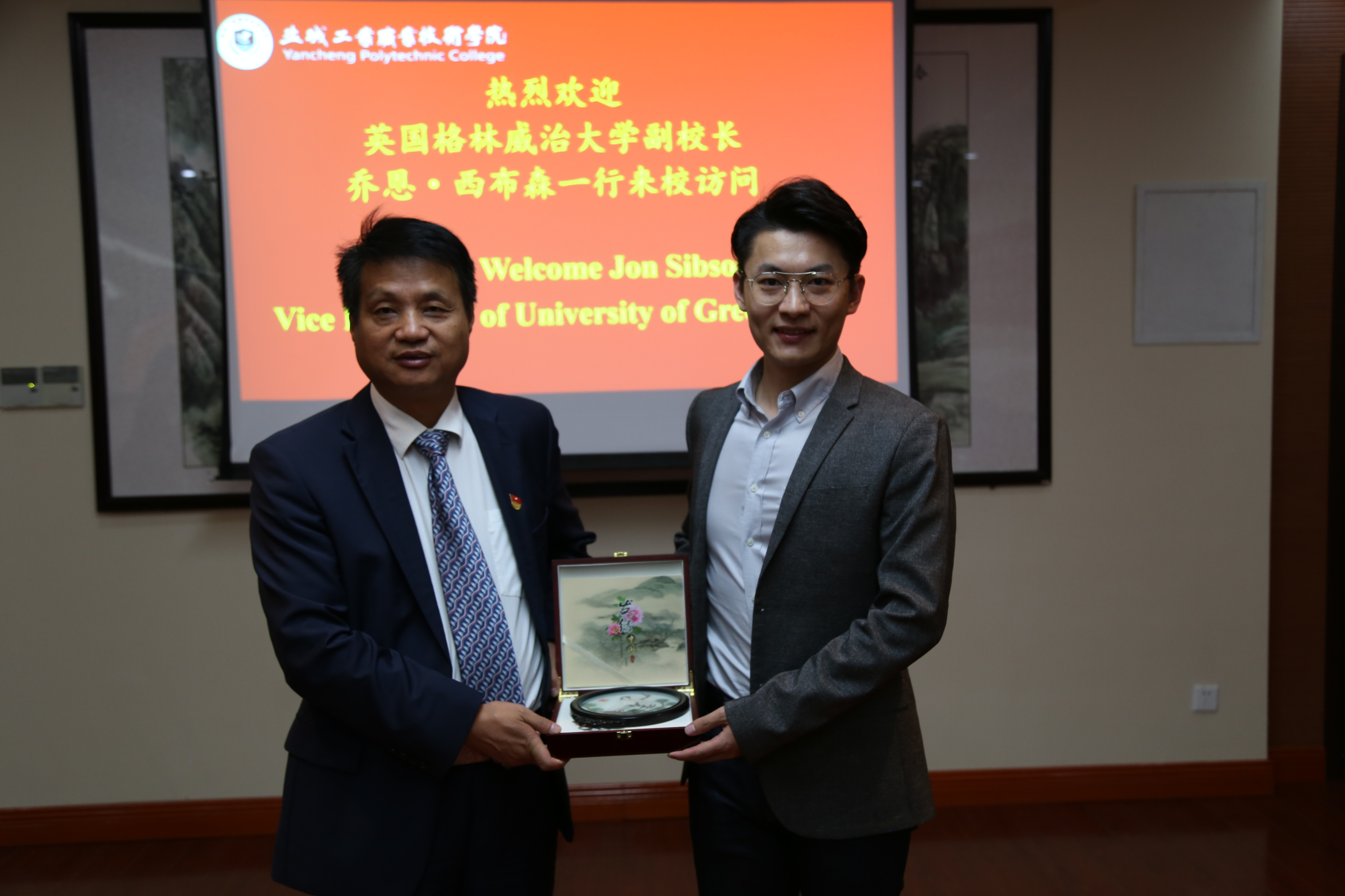 10月23日,格林威治大学副校长乔恩•西布森和格林威治大学中国代表王尧冬先生访问我校。校长瞿才新,副校长孙卫芳,院长办公室、教务处、国际合作处和经贸管理学院主要负责人在图文信息中心第一会议室热情接待了乔恩•西布森一行。