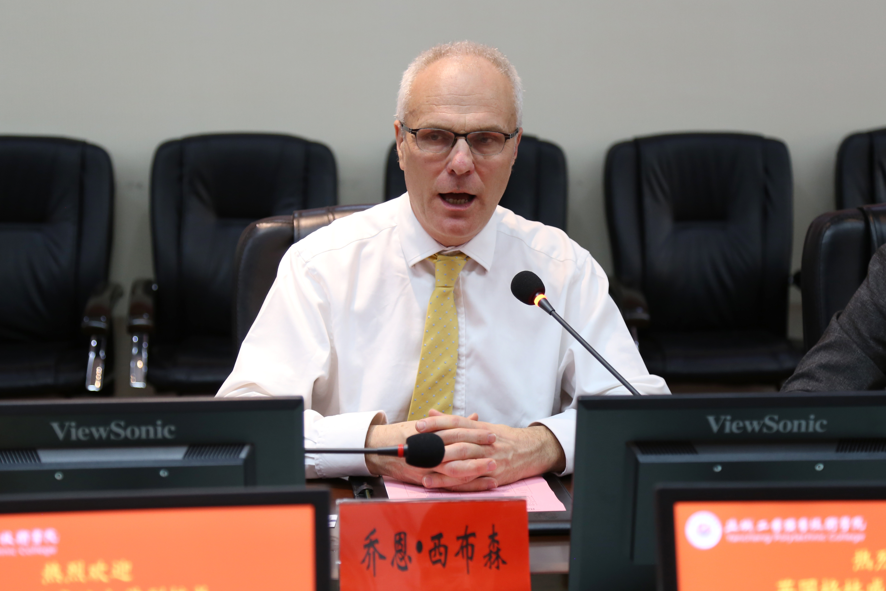 相关职能部门负责人就课程学分互认、师生学历提升、文化交流、合作办学等方面与乔恩•西布森进行了深入交流,并取得了共识。
