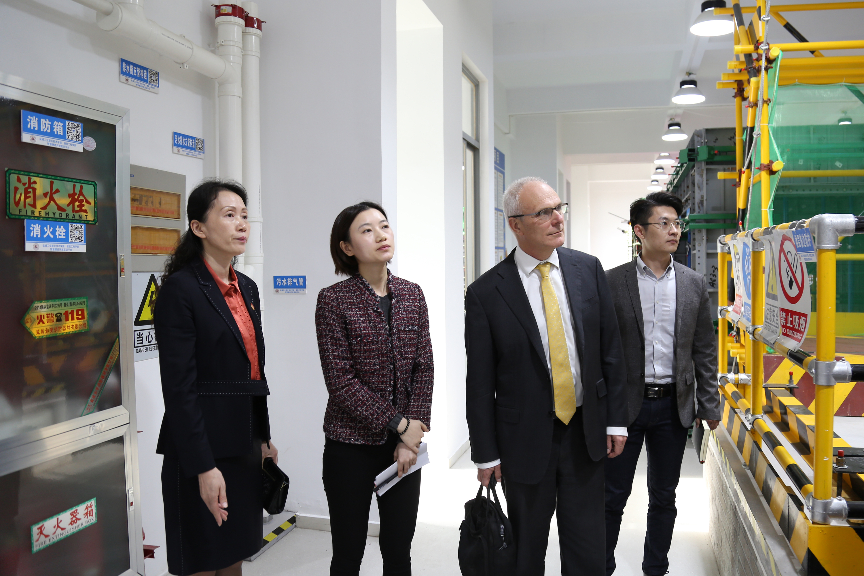 会前,乔恩•西布森一行参观了我校智慧建造实训中心、纺织服装展览馆、工业中心等校内实习实训场所。