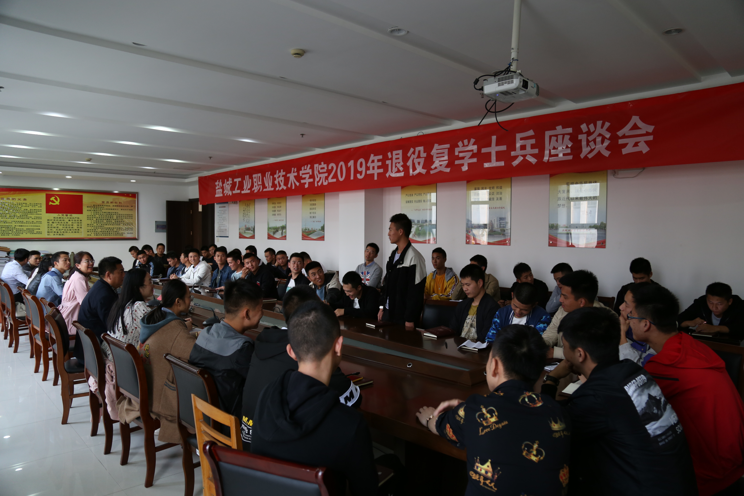 10月23日,学校在图文信息中心第二会议室召开2019年退役复学学生座谈会。副校长刘必千,学工处处长孙干,各二级学院人武工作负责老师及42名退役复学学生代表参加会议。座谈会由孙干主持。