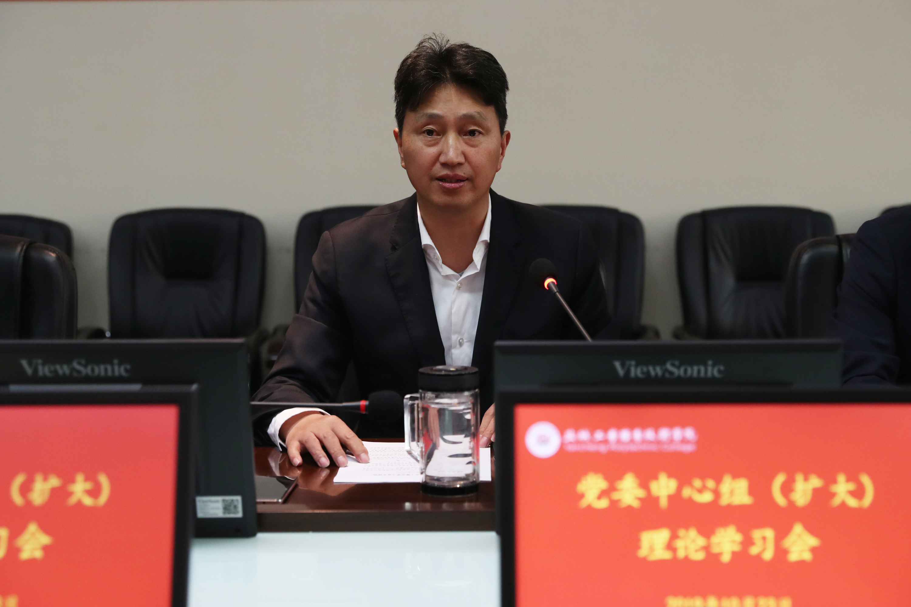 10月23日,学校党委中心组(扩大)理论学习会在图文信息中心第一会议室召开。校党委书记邵从清主持学习会。校领导班子成员,各二级学院党政负责同志及各部门主要负责人参加学习会。