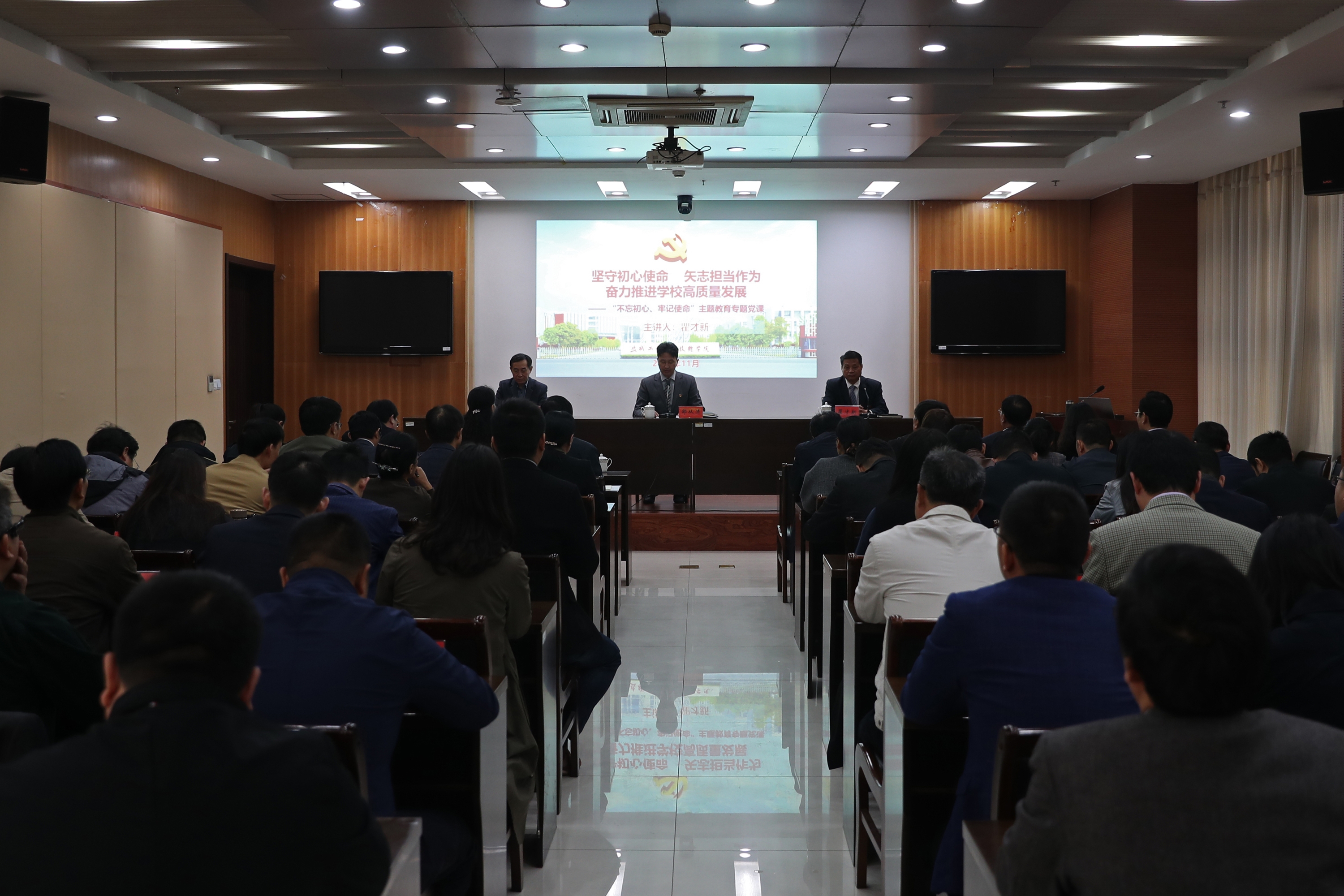 根据学校“不忘初心、牢记使命”主题教育工作安排,11月1日,党委副书记、校长瞿才新在图文信息中心第三会议室讲授《坚守初心使命,矢志担当作为,奋力推进学校高质量发展》主题教育专题党课。省委第13巡回指导组领导,学校领导班子成员、中层干部和部分党员同志聆听了党课。校党委书记邵从清主持党课。