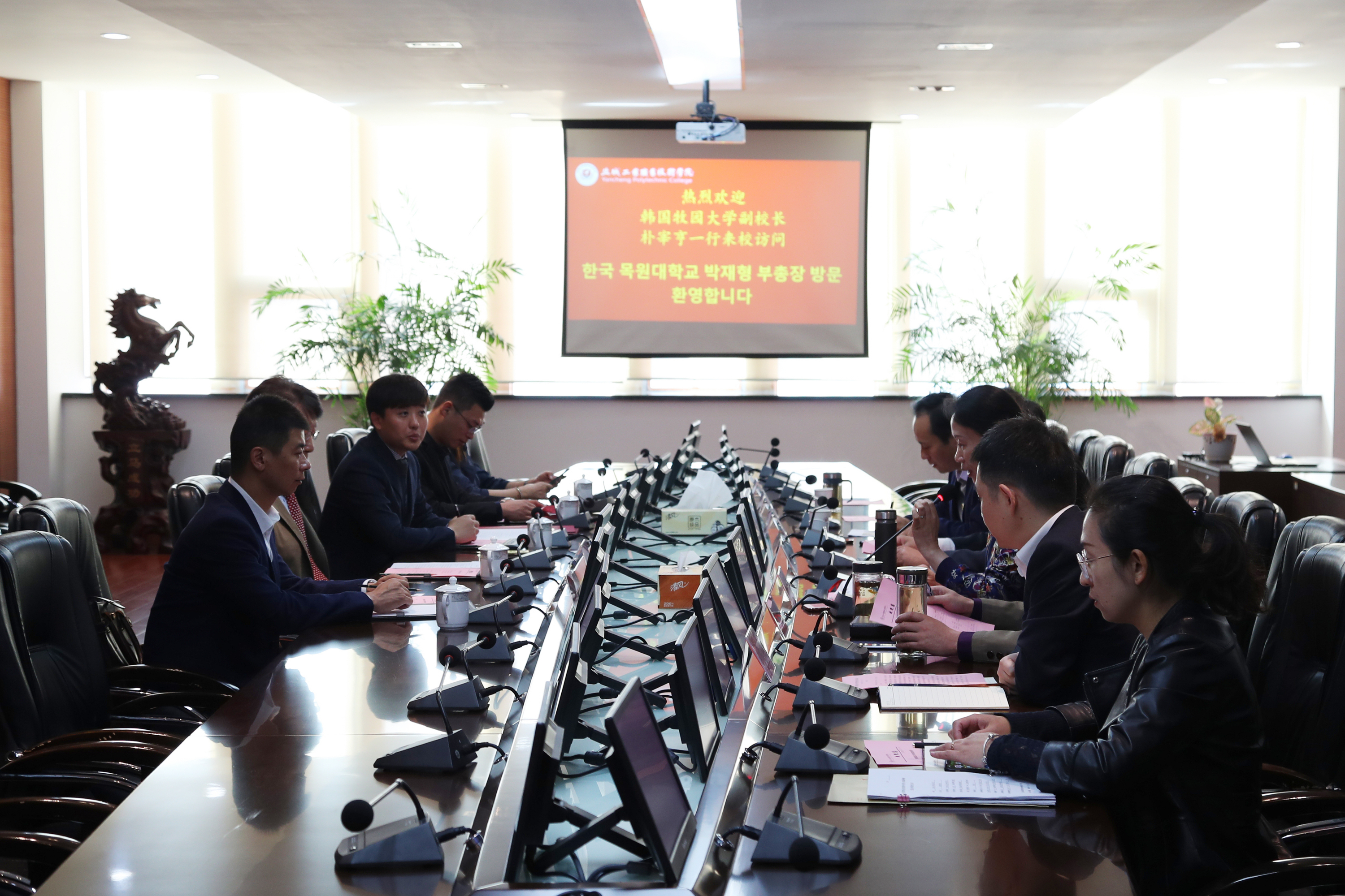 朴宰亨对我校先进的办学理念、良好的教学设施、园林式的环境表示赞赏,在介绍了赴韩国牧园大学留学及交换学习的情况后,希望双方能保持密切联系,开展各领域合作。随后,双方就教师及研究人员交流、学生交流与留学生选派、科研项目共同研究与开发、学术与教学活动合作等事宜进行了深入交流和探讨,并签订了合作协议。
