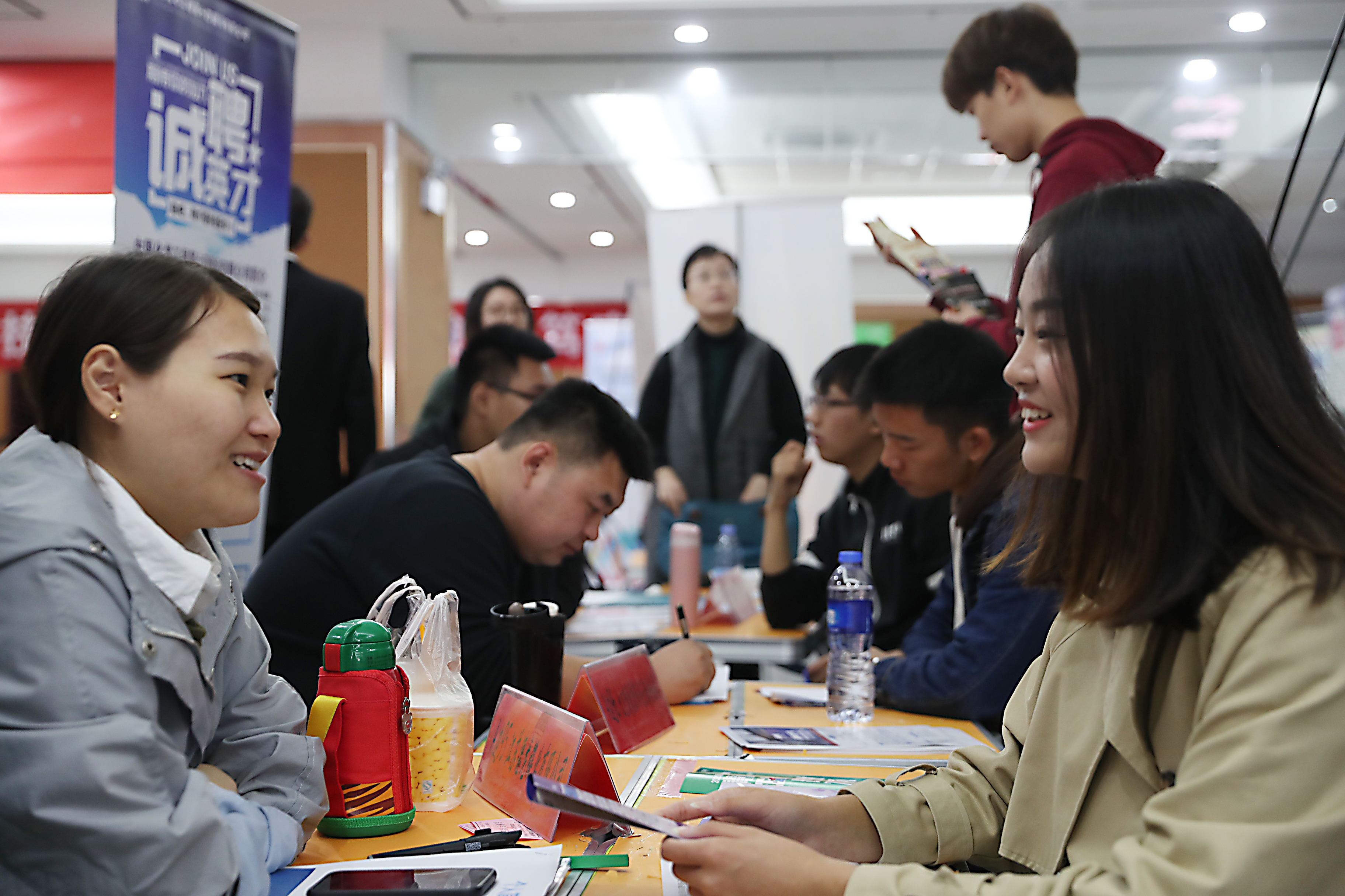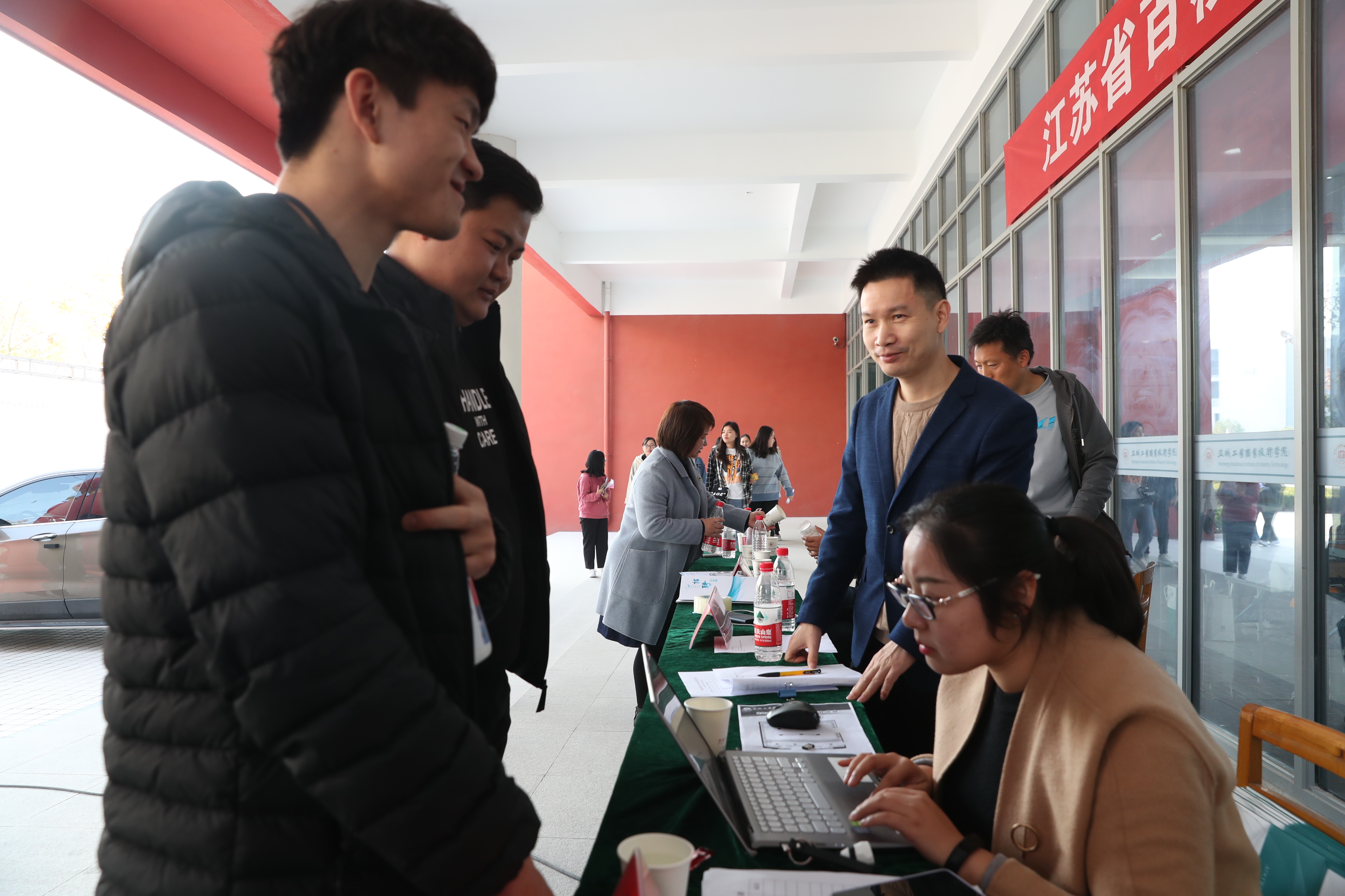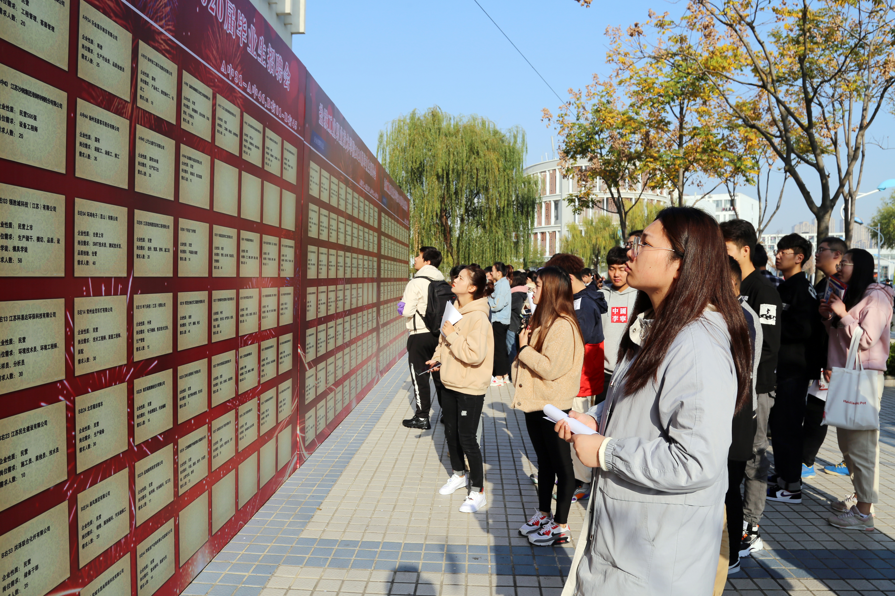招聘会规范有序。学工处、团委和二级学院负责人,全体毕业班辅导员、班主任到会做好用人单位接待和毕业生求职辅导工作;后勤管理处、安全保卫处等部门有条不紊地做好车辆引导、秩序维护、安全保卫和服务保障等工作。徐工随车起重机有限公司、上汽大通有限公司无锡分公司、上海水星家用纺织品股份有限公司、扬子江药业集团、江苏京东海元贸易有限公司、江苏中南建筑产业集团有限责任公司、艾诺装饰工程有限公司等251家优质参会企业为我校毕业生提供了8000余个工作岗位,这些单位来自机械、机电、汽车、纺织、制药、贸易、建筑、装饰等行业,实现了对我校专业的全覆盖。毕业生们纷纷来到自己感兴趣的用人单位摊位前,投递简历,了解相关政策及用人情况。