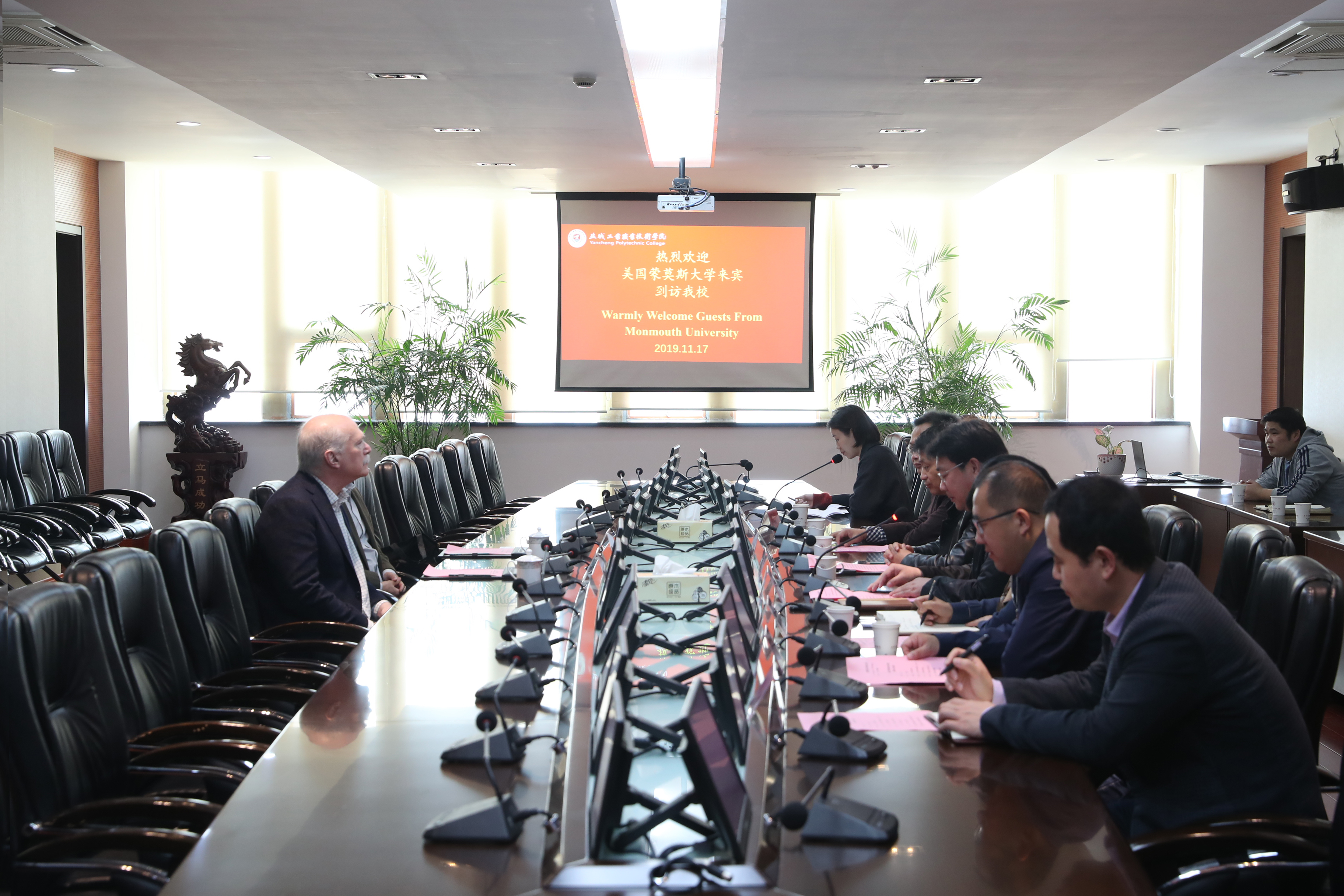11月17日,美国蒙莫斯大学科学学院院长史蒂芬·巴卡拉克、终身教授王加存博士访问我校。我校校长瞿才新、副校长蔺俊热情接待了来访客人并举行座谈会。九洲药学院、机电工程学院、专项建设办公室、国际合作处等部门负责同志参加了交流。