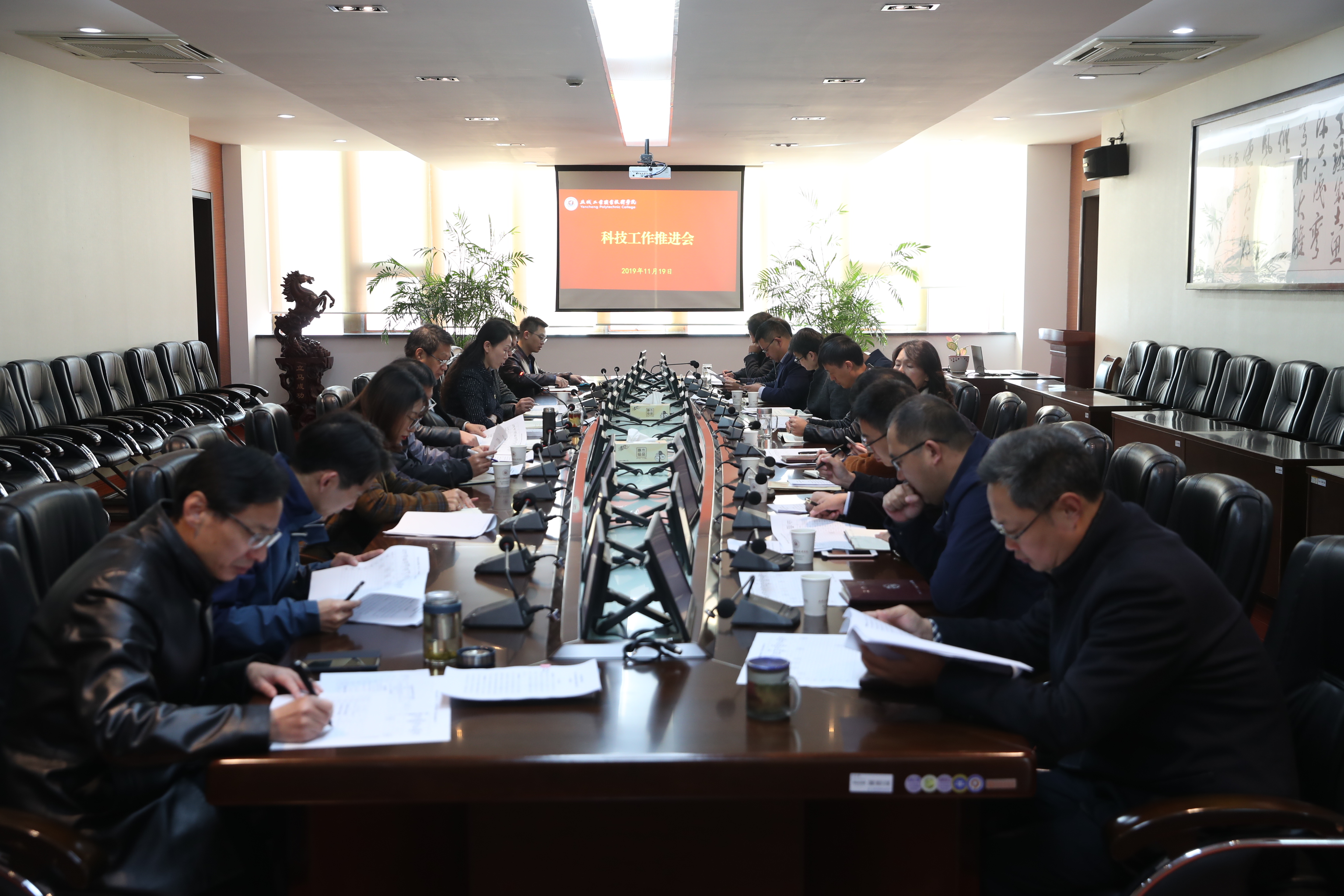会上,科技产业处副处长邓先宝解读了《关于进一步推动校企深度合作的实施办法(试行)(征求意见稿)》文件,与会人员对实施办法进行了研讨并提出修改意见。科技产业处副处长王曙东通报了2019年各二级学院科研指标完成情况,并部署了近期各项重点工作。