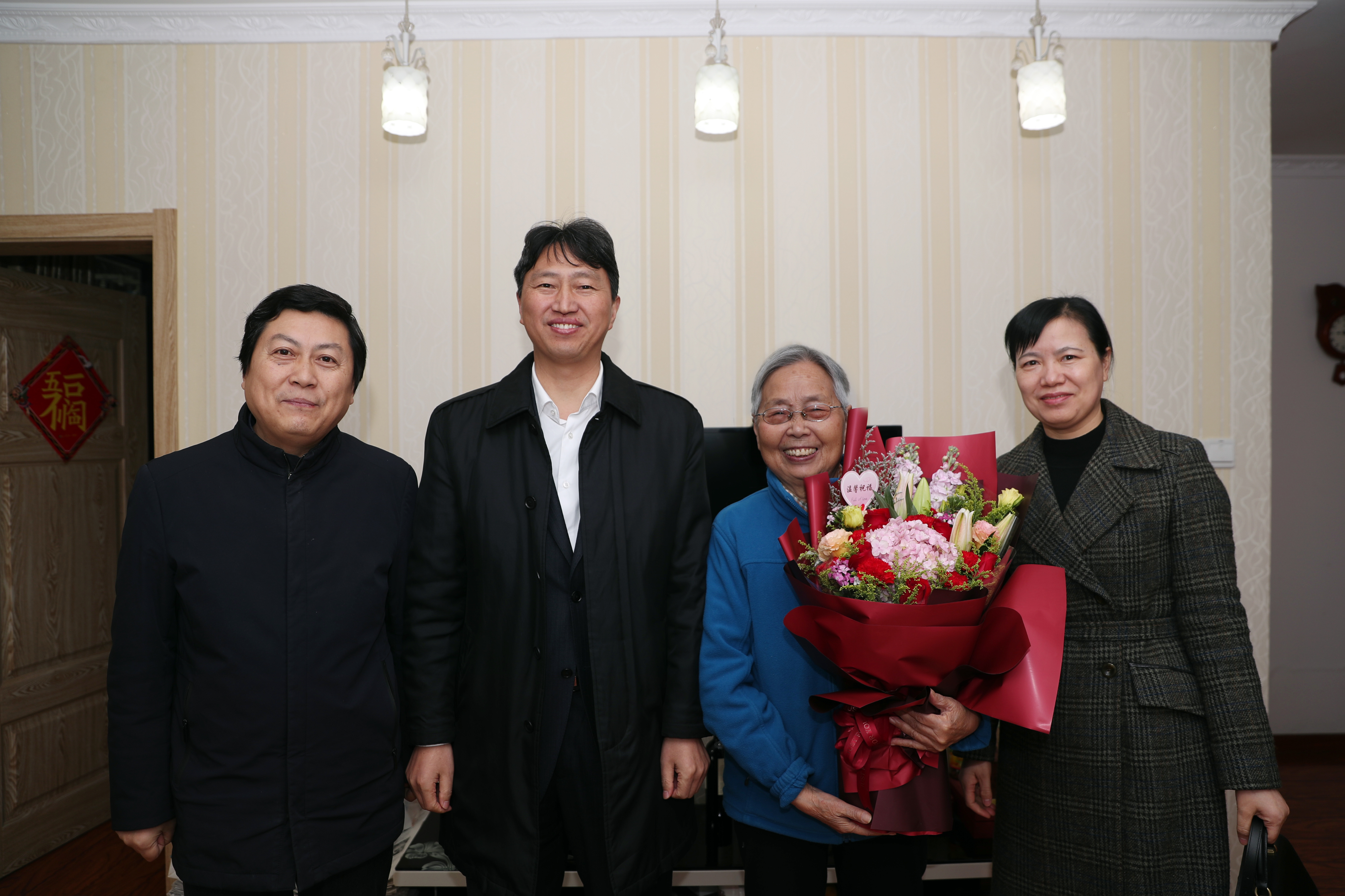 12月5日,学校党委书记邵从清带领党委委员、组织部部长吉鸿,组织部副部长祁艳清等同志,为今年适逢70岁、80岁生日的离退休老同志登门祝寿,送去组织的关心和祝福,表达诚挚的问候和美好的祝愿!在老同志家中,邵从清详细了解老人的身体和家庭情况,与老人家属聊起家常,并代表学校送上鲜花和慰问金,祝愿老人家身体健康,阖家幸福。