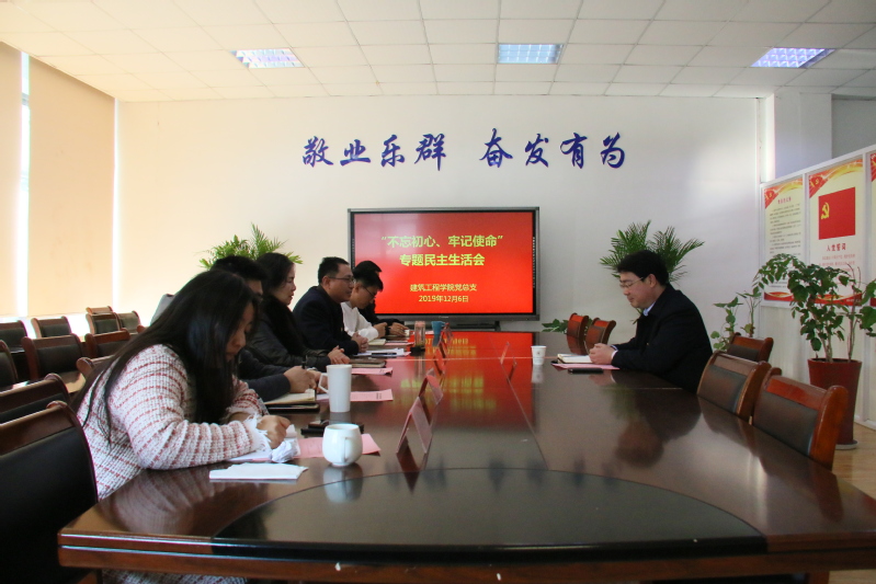 12月6日,建筑工程学院党总支在102会议室召开“不忘初心、牢记使命”专题民主生活会。副校长蔺俊到会指导。建筑工程学院党总支委员会全体成员参加会议,会议由总支副书记张国兵主持。