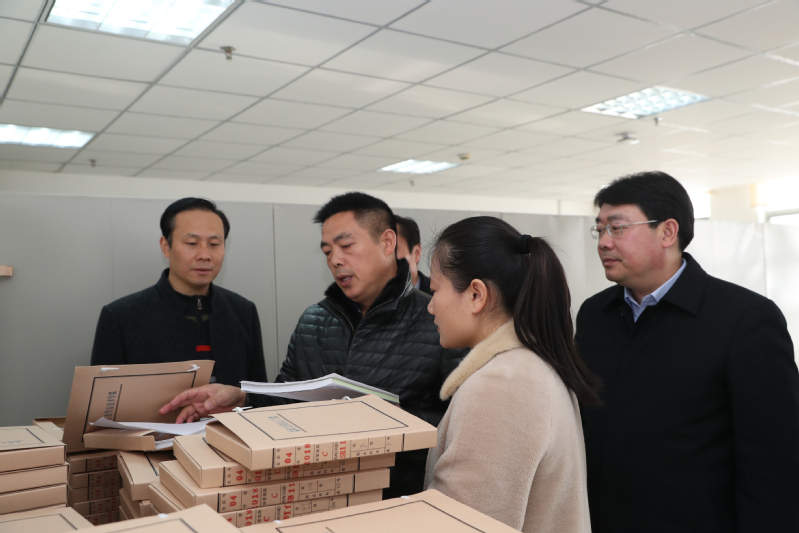 蔺俊向检查组汇报了学校概况、档案建设情况和学校办学成就。刘永红一行实地查看了我校综合档案室办公室、阅档室、库房,查阅了资料台账,查看了2018年整理归档的档案,对我校综合档案室良好的设施、规范的管理给予了充分肯定,同时就如何优化档案的收集与管理进行了交流,提出了指导性建议。