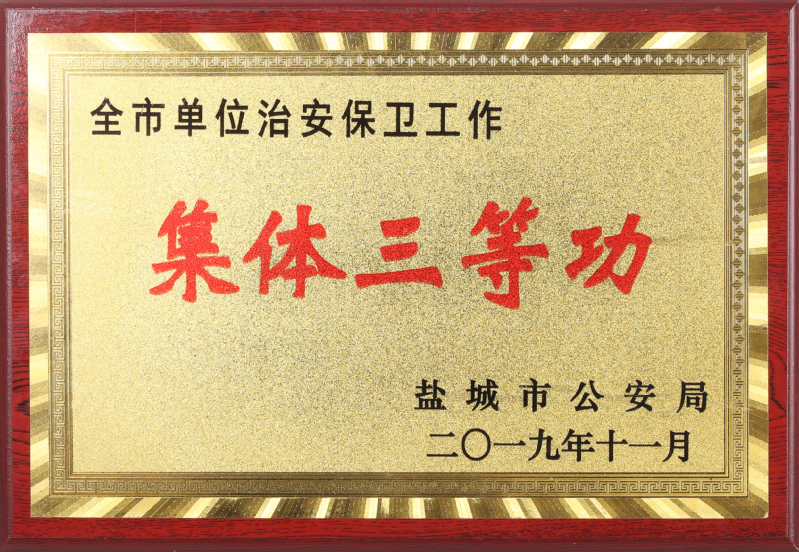 近日,盐城市公安局对2019年全市治安保卫工作先进集体进行表彰,学校荣立“集体三等功”。这是我校继2018年以来第二次立功受奖,全市仅14个单位获此殊荣。