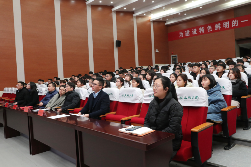1月8日,学校在学术报告厅举办了“奋斗的我,最美的国”新时代先进人物进校园事迹报告会。第八届“盐城青年五四奖章”获得者建湖县特殊教育学校郭红艳老师、盐城市城南新区伍佑初级中学张大中老师和第八届“盐城青年五四奖章提名奖”获得者江苏大郎生态农业科技发展有限公司葛克朗总经理应邀来校作先进事迹报告。团市委统战部部长李茜,我校党委委员、宣传部部长陈宏武,团委书记裴华尉,团委副书记包婷婷及学生代表300多人参加了报告会。报告会由陈宏武主持。