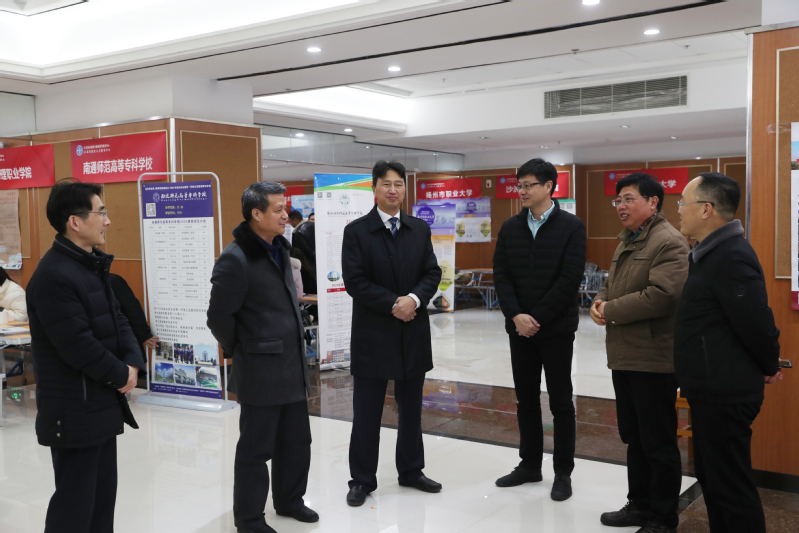 江苏省高校招生就业指导服务中心副主任黄炜、盐城市教育局副局长丁才林、盐城市招生考试中心主任韩震宇在我校党委书记邵从清、校长瞿才新、副校长刘必千等陪同下,就咨询会筹备、开展、服务情况以及学生、家长所关注的问题进行了深入细致的了解。黄炜和丁才林对本次活动的组织、现场布置、服务保障等都给予了充分认可和高度评价。咨询会的举办,为有意通过提前招生进入高校的学生及时解答了疑难问题和思想顾虑,受到来现场咨询的学生、家长及参会高校的一致好评!