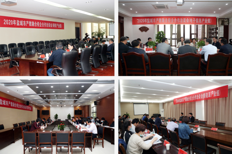 5月12日下午,由市工信局、市教育局联合主办的2020年盐城市产教融合校企合作洽谈会在我校举行。盐城市工信局党组副书记、副局长袁志亚,盐城市教育局副局长刘广平及相关处室负责人,盐城市汽车、新能源、电子信息、钢铁四大主导产业规模以上企业代表,盐城技师学院、各重点职业学校代表,我校校长瞿才新、党委副书记张林龙、副校长孙卫芳、刘必千、蔺俊及相关职能部门领导参会。市教育局职社处处长孙晓明主持会议。