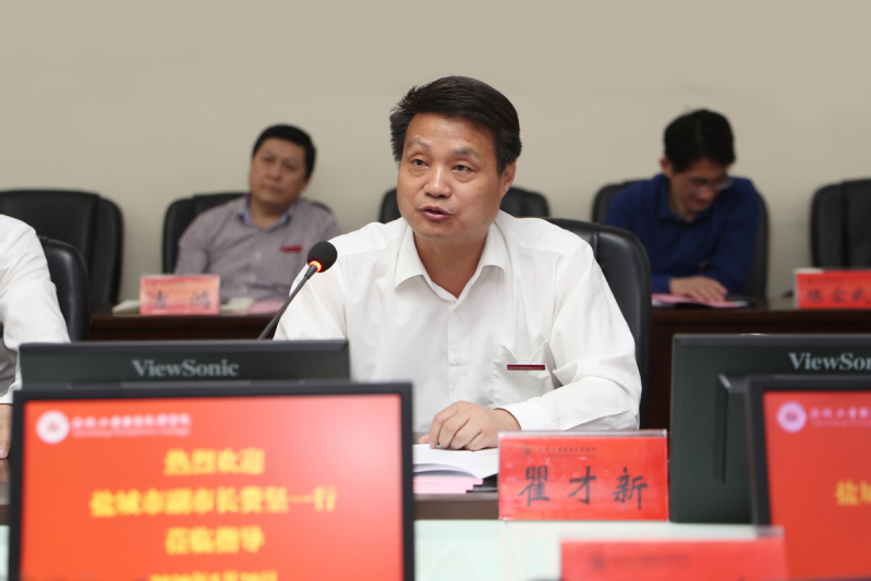 5月20日下午,盐城市人民政府副市长费坚、市政府副秘书长王胜、市政府秘书七处处长周振宇一行到我校调研。校党委书记邵从清,校长瞿才新,党委副书记张林龙,副校长刘必千、蔺俊,纪委书记夏燕萍以及部分职能部门和二级学院负责人参加了调研座谈会。邵从清主持会议。
