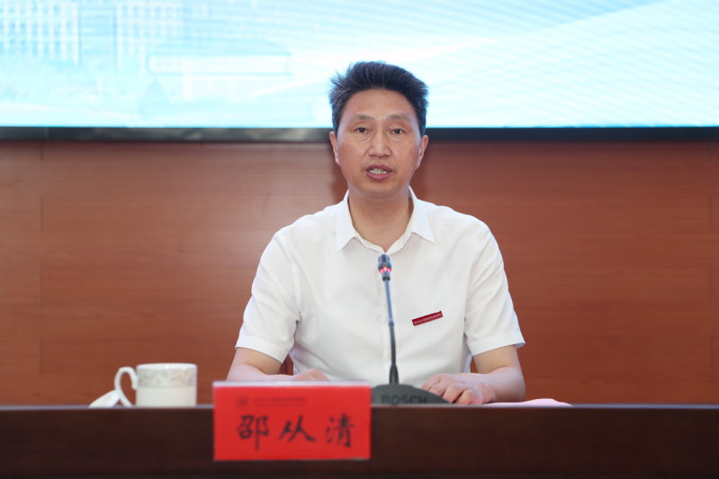 邵从清讲话指出,面向社会人员开展全日制学历教育,是贯彻落实党中央、国务院重大决策部署的必然要求,也是我校加快特色鲜明一流高职院校建设、推进高质量发展的关键之举。为此,邵从清提出了三点意见。第一,要始终把“立德树人、为国育才”作为根本任务,以正确的方向引领社招人才培养工作;第二,要始终把“职业立身、技术报国”作为终身使命,以科学的举措推进社招人才培养工作;第三,要始终把“教书育人、成长成才”作为价值导向,以融合的视野创新社招人才培养工作。邵从清希望同学们胸怀远大理想,厚植家国情怀,勤于学习、勇于实践,争做为人诚实、理想务实、技能扎实、工作踏实、创新笃实的“五实”人才。
