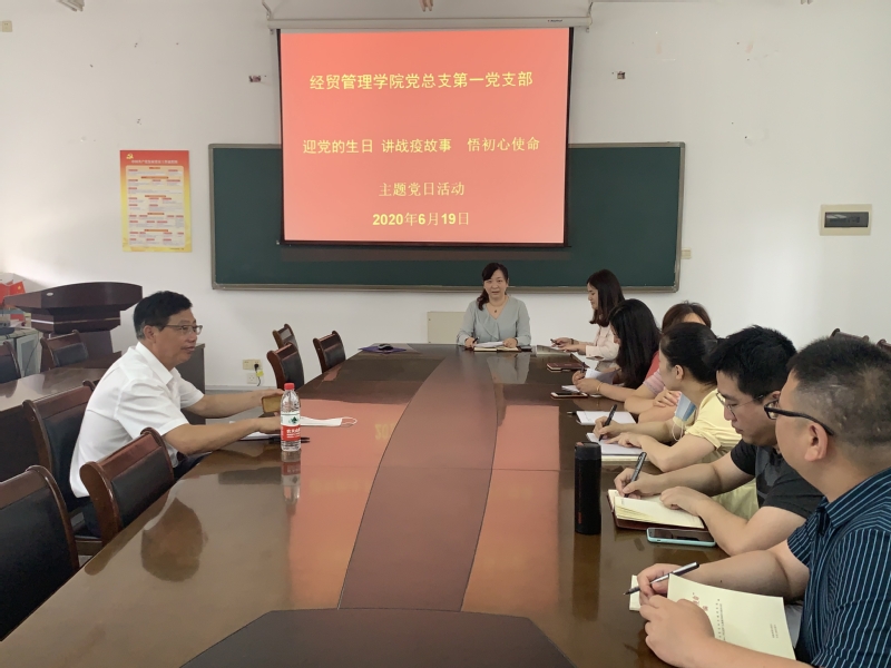 6月19日,经贸管理学院党总支第一党支部全体党员在309会议室开展“迎党的生日,讲战疫故事,悟初心使命”主题党日活动,副校长刘必千以普通党员的身份参加了此次主题党日活动。活动由第一党支部书记李萍主持。