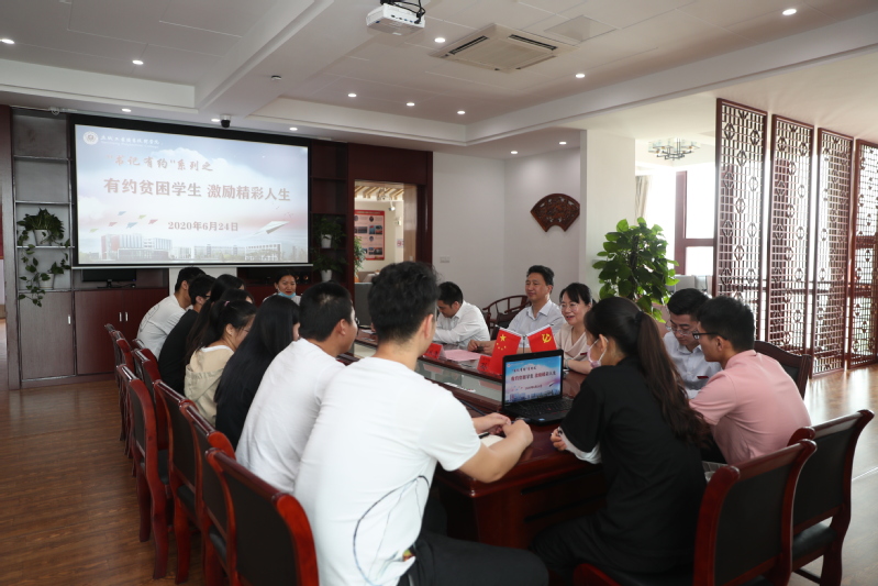 6月24日,学校在图文信息中心红色书屋举办“书记有约”活动,校党委书记邵从清有约家庭贫困学生,面对面亲切交流,激励精彩人生。学工处处长孙干,办公室副主任杨勇,各二级学院学生代表参加活动。本次活动由孙干主持。