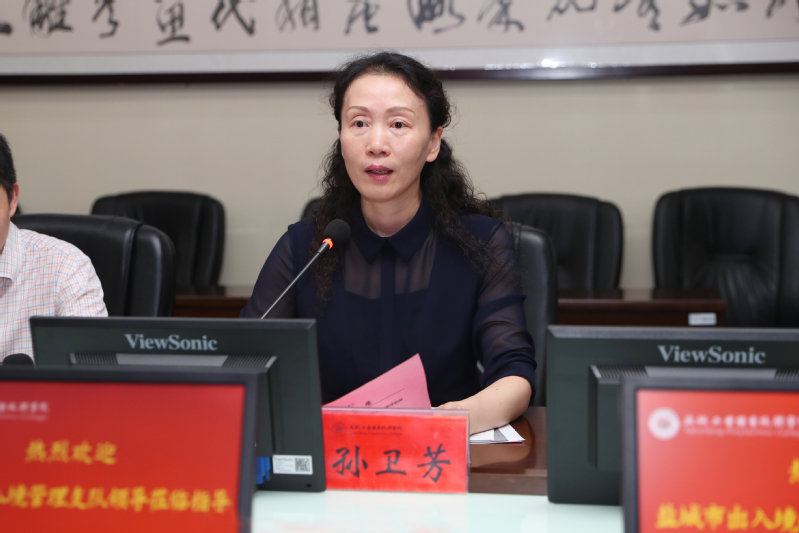 孙卫芳代表学校感谢盐城市公安局出入境管理支队在我校留学生录取审核、入学教育、签证办理、出入境政策指导等方面给予的大力支持和帮助,表示学校将一以贯之落实好国家和省市疫情防控要求,做好留学生管理工作,也希望盐城市公安局出入境管理支队给予政策支持和关心指导,助推我校留学生管理工作迈上新台阶。