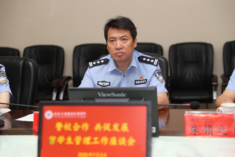 贾阿军介绍了盐城市公安局出入境管理支队在出入境管控、签证受理、境外人员管理、涉外事件处理等方面的相关职能,解读了疫情防控期间的签证政策,并从做好暑期校园防控管理保障留学生生命安全、加强警校信息沟通构建联动管理机制、做好留学生录取信息审核保障生源质量等方面对我校留学生管理工作进行了指导。